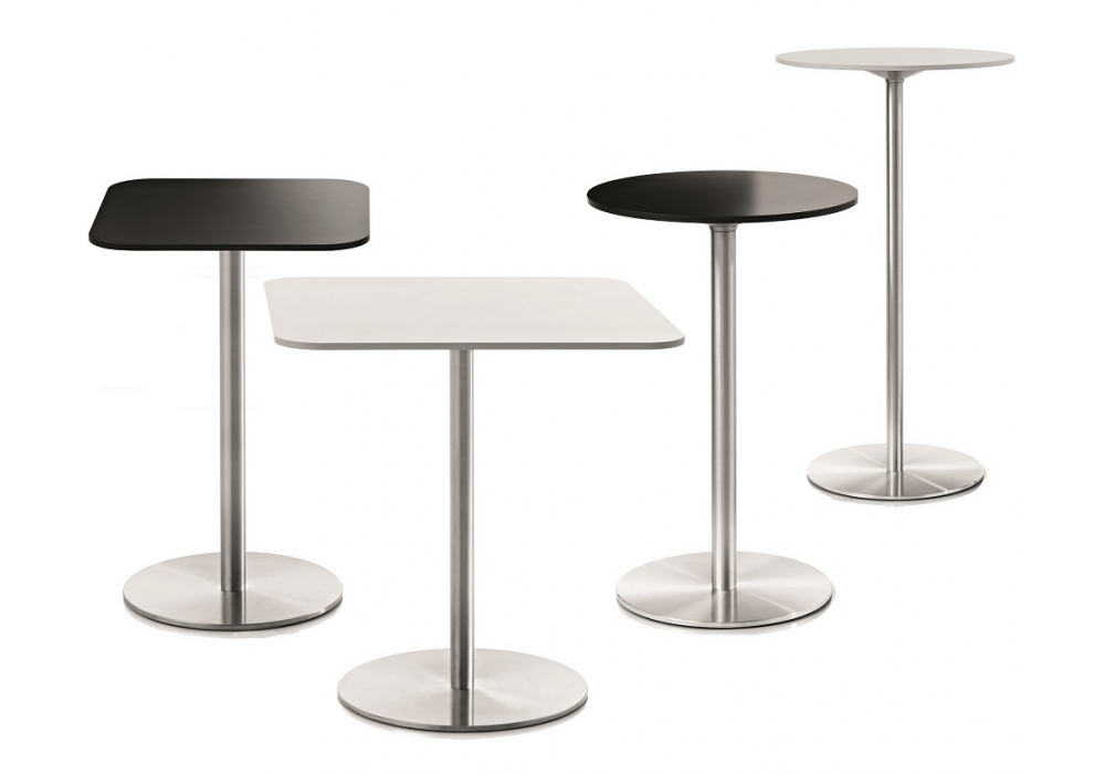 Passe-partout designed by Magis is a table characterized by base and column in satin stainless steel and top in HPL. Available in different finishes and sizes.