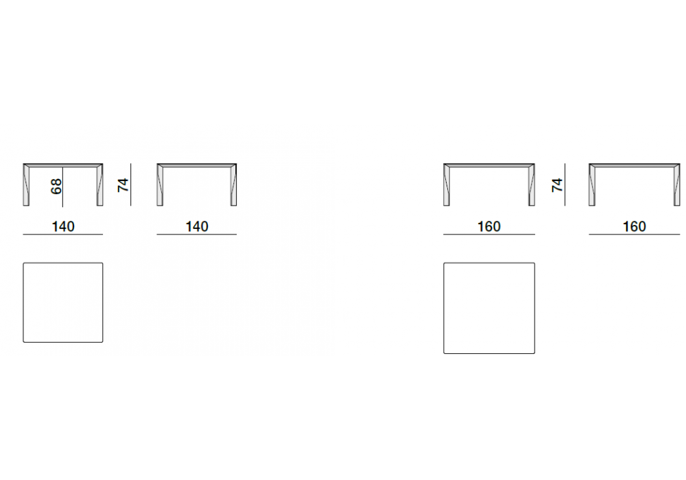 | Dimensions | 140 x 140 x H 74 cm; 160 x 160 x H 74 cm |