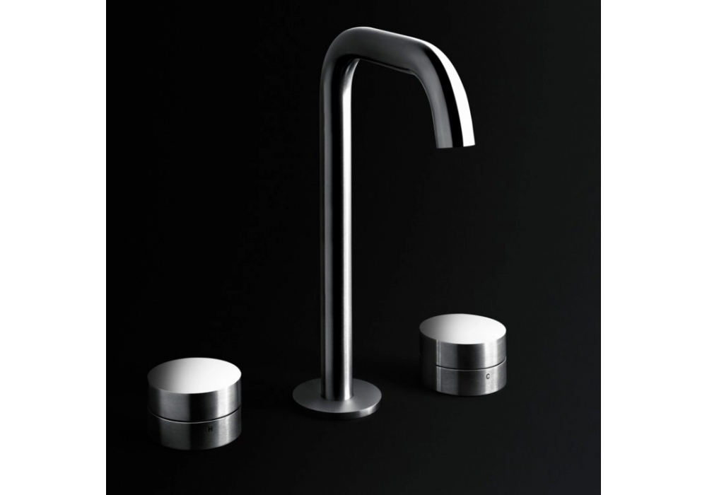 Eclipse designed by Studiocharlie for Boffi is a top-mounted washbasin taps in stainless steel AISI 304. Available in satin stainless steel and PVD gray finishes.