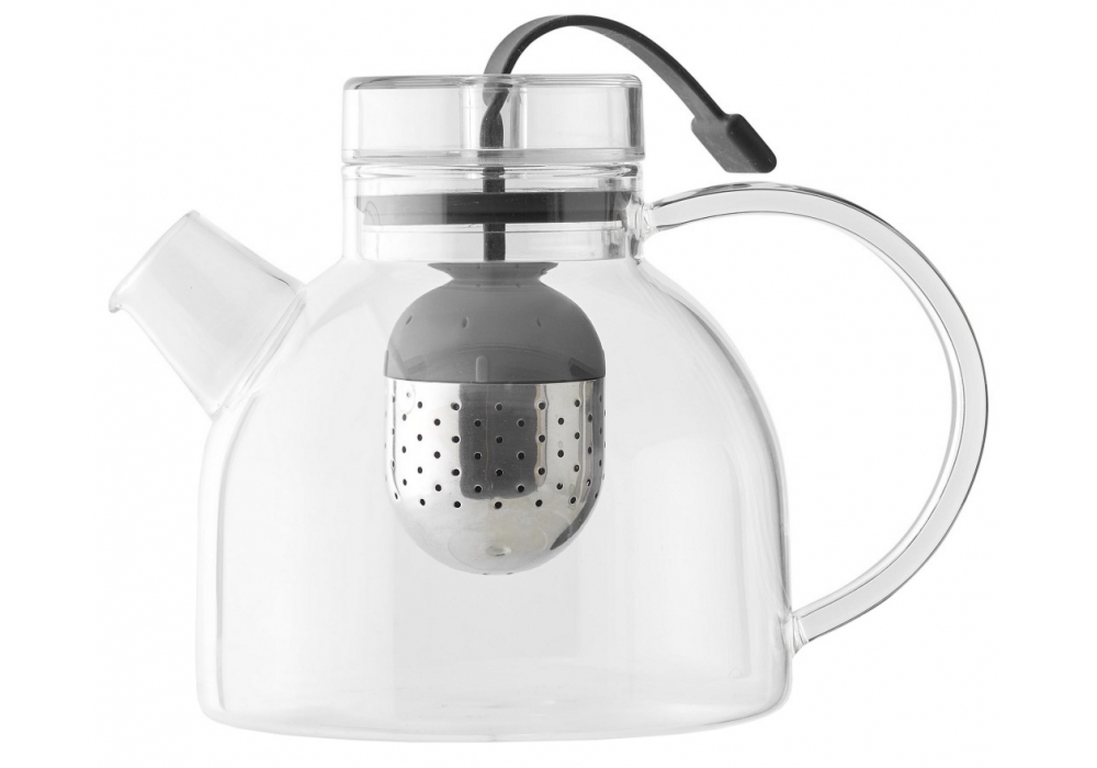 Kettle Teapot designed by Norm Architects for Audo Copenhagen is a teapot made of glass, stainless steel and silicone cord and stopper.