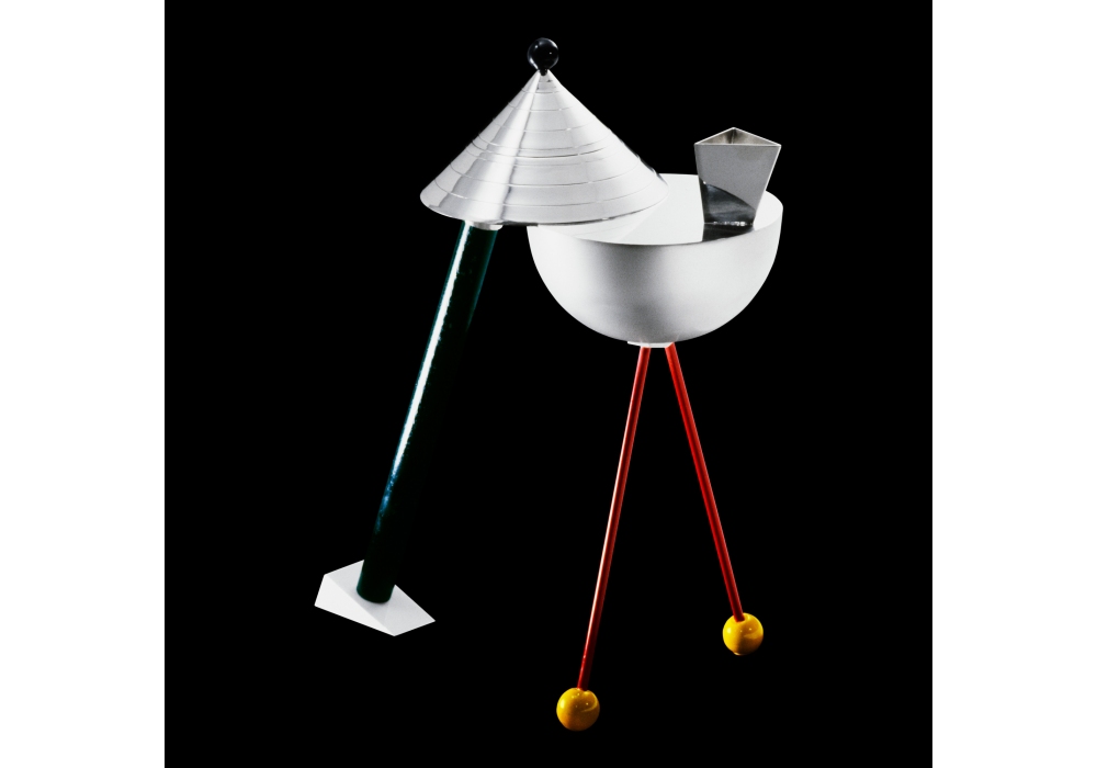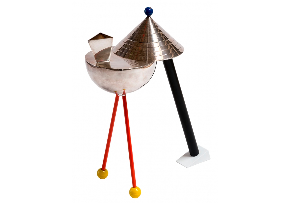 Anchorage designed by Peter Shire for Memphis Milano is a teapot made of silver-plated brass or 925 silver.