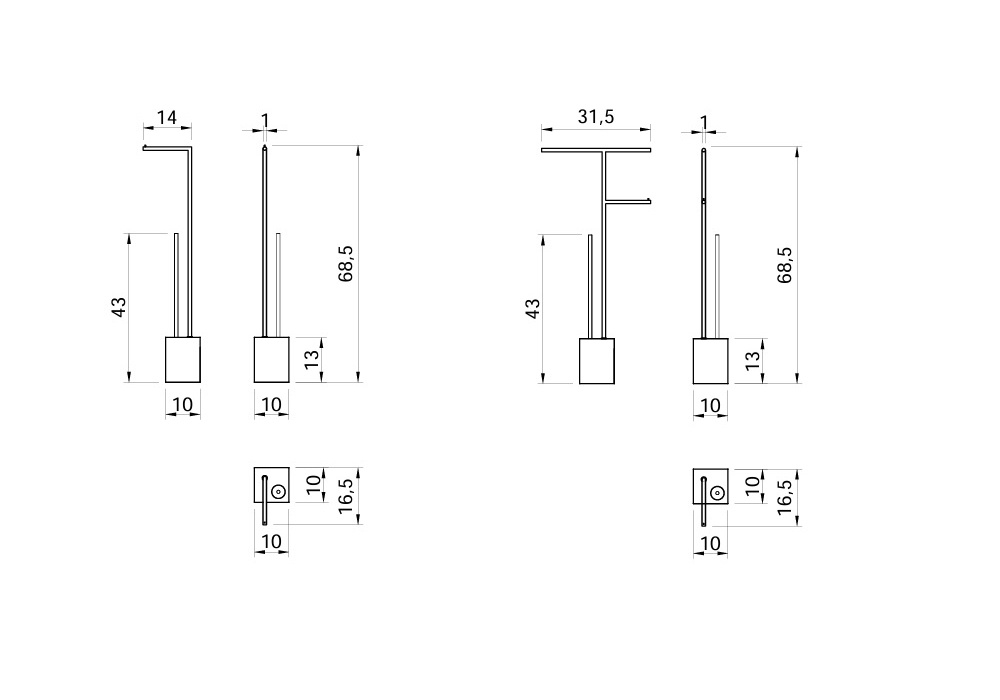| Dimensions | 16.5 x 10 x H 68 cm; 31.5 x 10 x H 68 cm. |