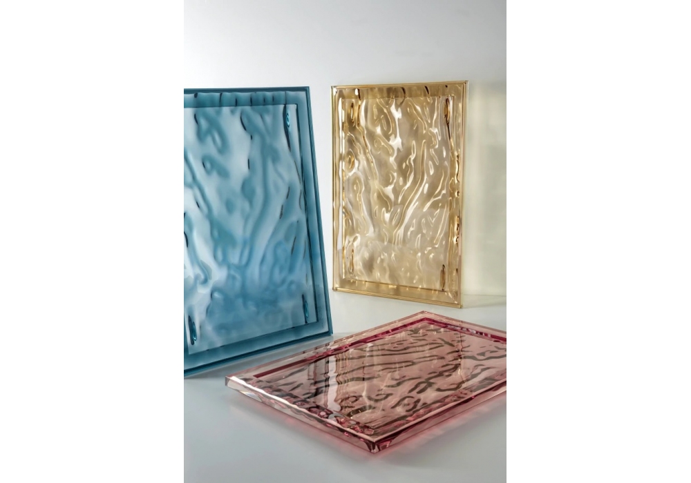 Dune designed by Mario Bellini for Kartell is a tray made in transparent or batch-dyed PMMA. Available in different finishes and dimensions.