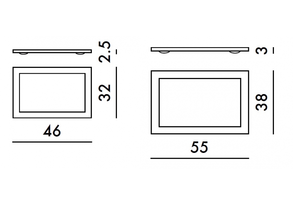 | Dimensions | Small_ 46 x 32 x H 2.5 cm; Large_ 55 x 38 x H 3 cm. |