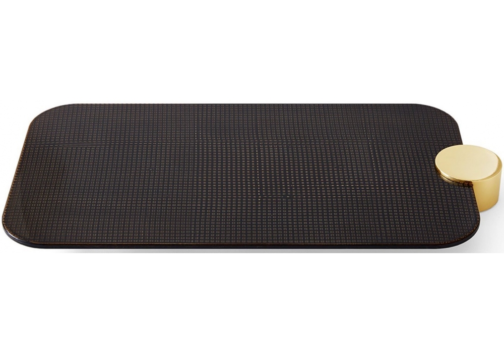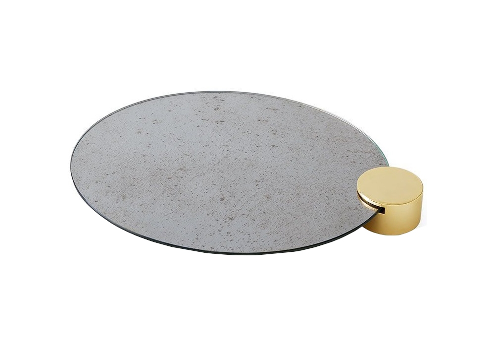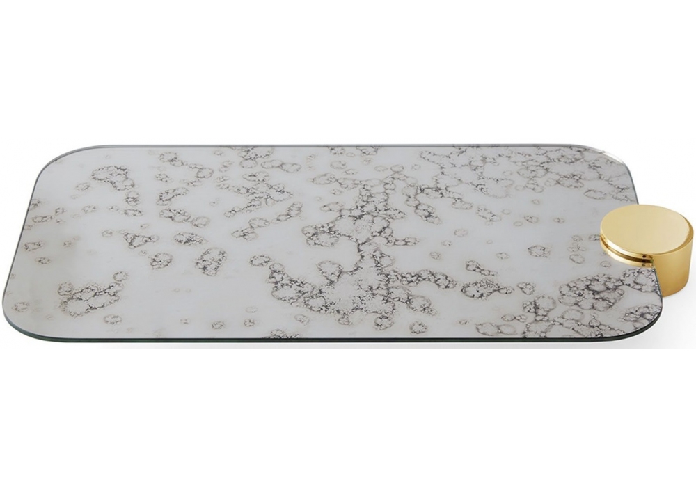 Odette Tray designed by Studio G&R is a tray in antiqued mirror available in the “Antique 1” or “Antique 2” finish. On request hand decorated glass in the Decò finish. Brassed metal support.