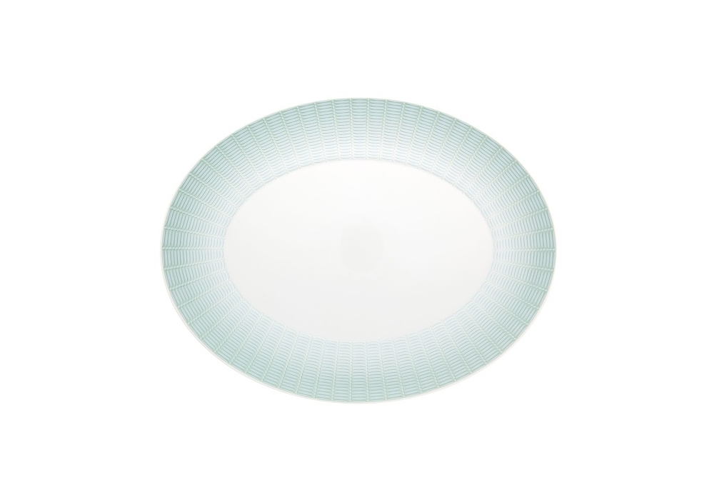 Venezia designed by Vista Alegre is an oval tray made of porcelain with platinum decoration finished with a touch of color in degradé. Available in different dimensions.