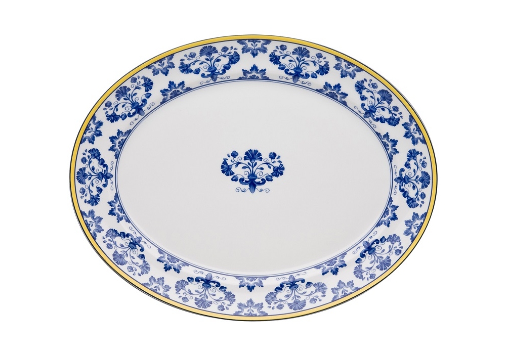 Castelo Branco designed by Vista Alegre is an oval tray made of porcelain inspired by the famous Castelo Branco embroidery. Available in different dimensions.