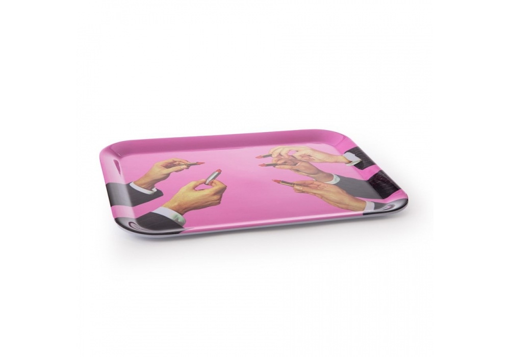 Lipsticks designed by Toiletpaper for Seletti is a quadrangular tray with rounded corners in pink melamine with colored prints.