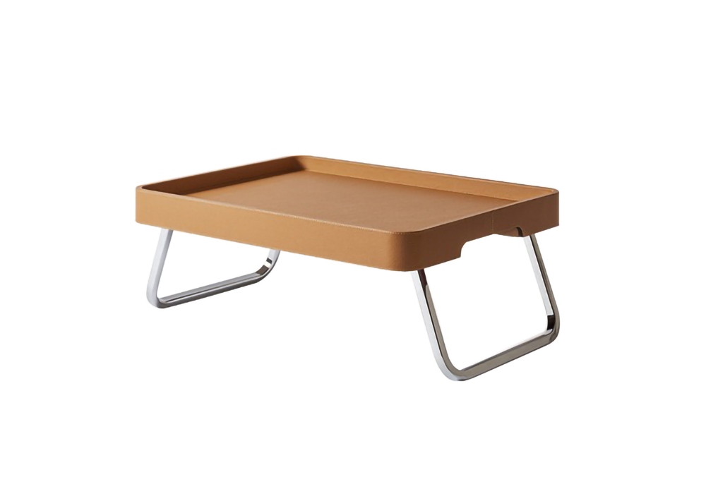 Tableware Collection designed by Giobagnara for Poltrona Frau is a bed tray with a structure with folding legs in chromed steel and a tray covered entirely in Pelle Frau®. Tableware Collection is available in different finishes.