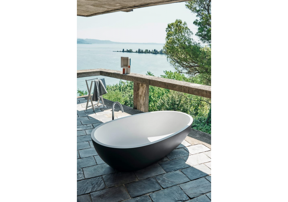 Spoon XL designed by Benedini Associati for Agape is an oval bathtub made of Cristalplant® biobased or marble in different finishes. There are no holes for the tap, which can be placed on the wall or on the floor.