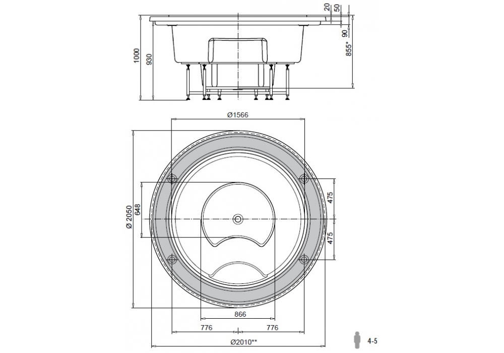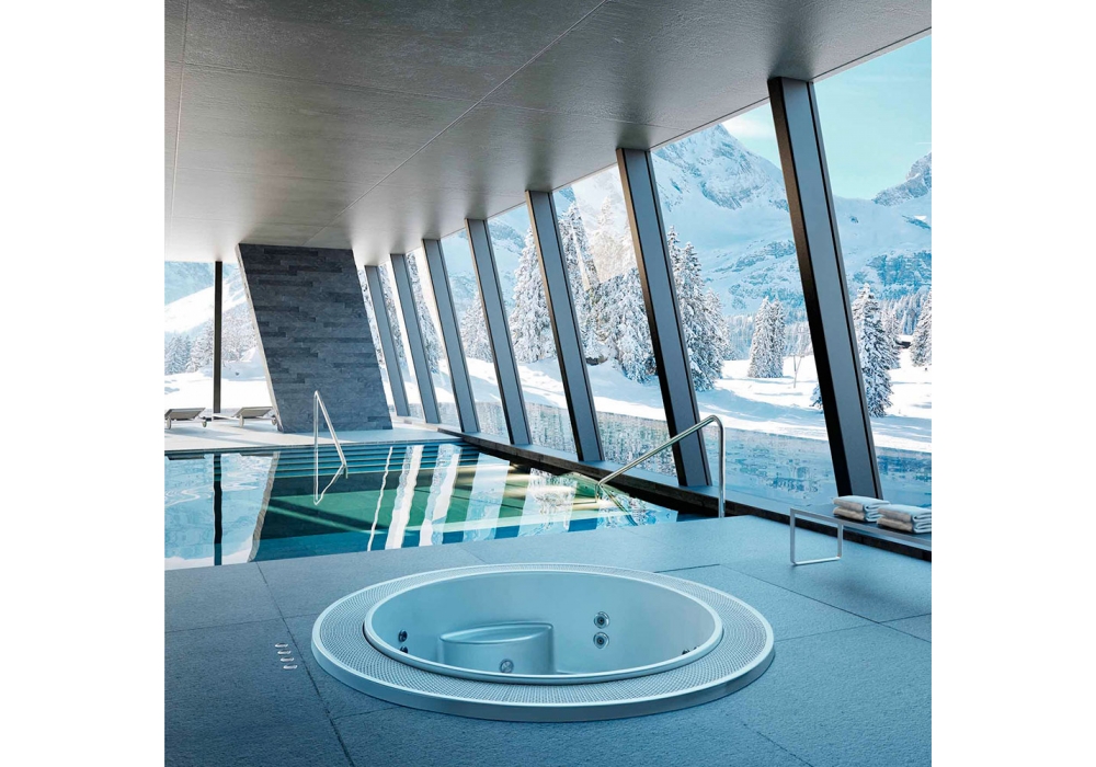 MySpa 0F210 designed by Glass Lab is an overflow built-in spa with 21 whirlpool jets, 24 airpool jets, chromotherapy, aromatherapy, external pneumatic buttons. Ozone system as optional. Grey insulating cover compulsory. Also available in 3 versions.