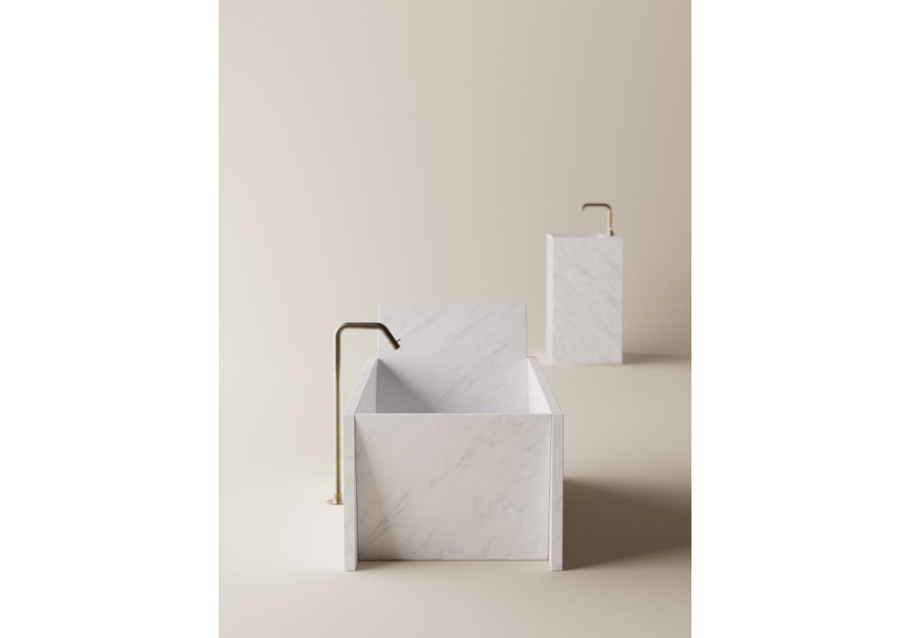 Face à face designed by Jean Nouvel for Agape is a bathtub made with marble slabs available in different finishes. There are no holes for the taps; which can be placed on the floor or on the wall.