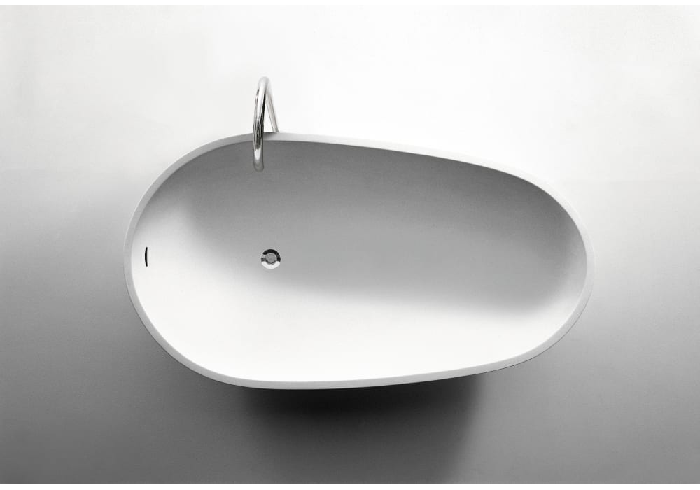 Spoon designed by Benedini Associati for Agape is an oval tub made of marble in different finishes. Tubs made of Petit Granit can be used both indoors and outdoors.