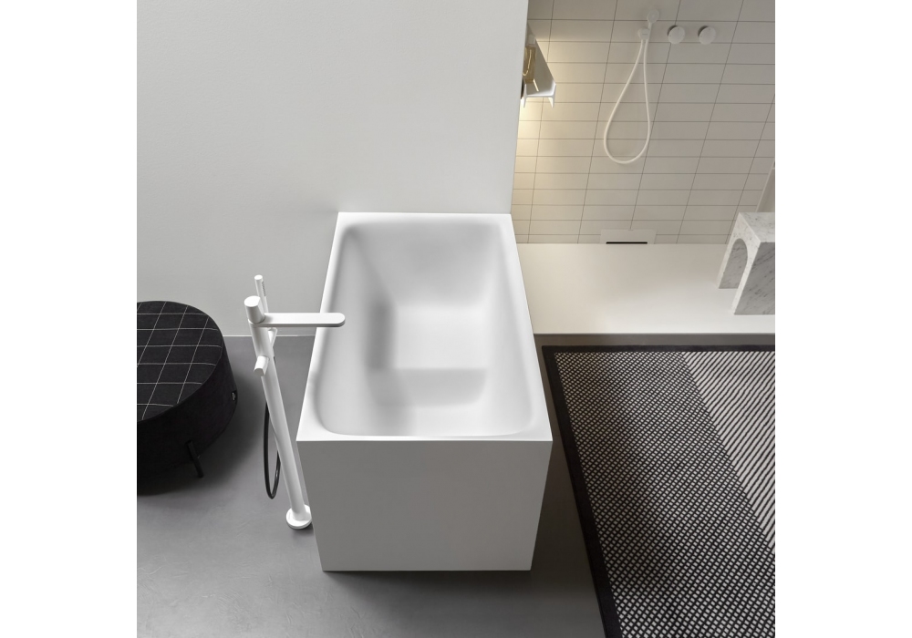 Cuba designed by Mario Ferrarini for Antonio Lupi is a rectangular bathtub in Flumood that can be painted externally in all the colours in our sample collection, in Colormood that can be painted internally and externally, complete with drain with invisible automatic overflow, siphon and flexible hose.