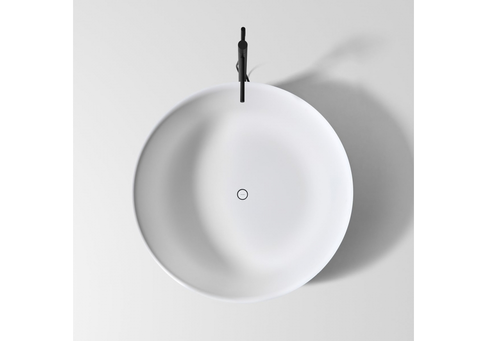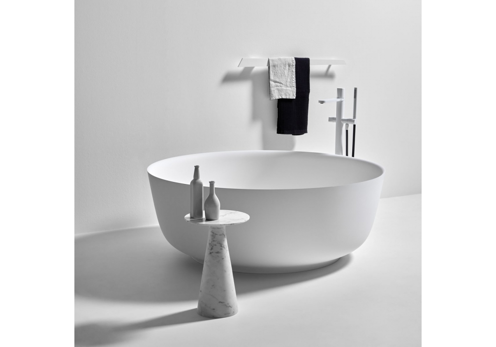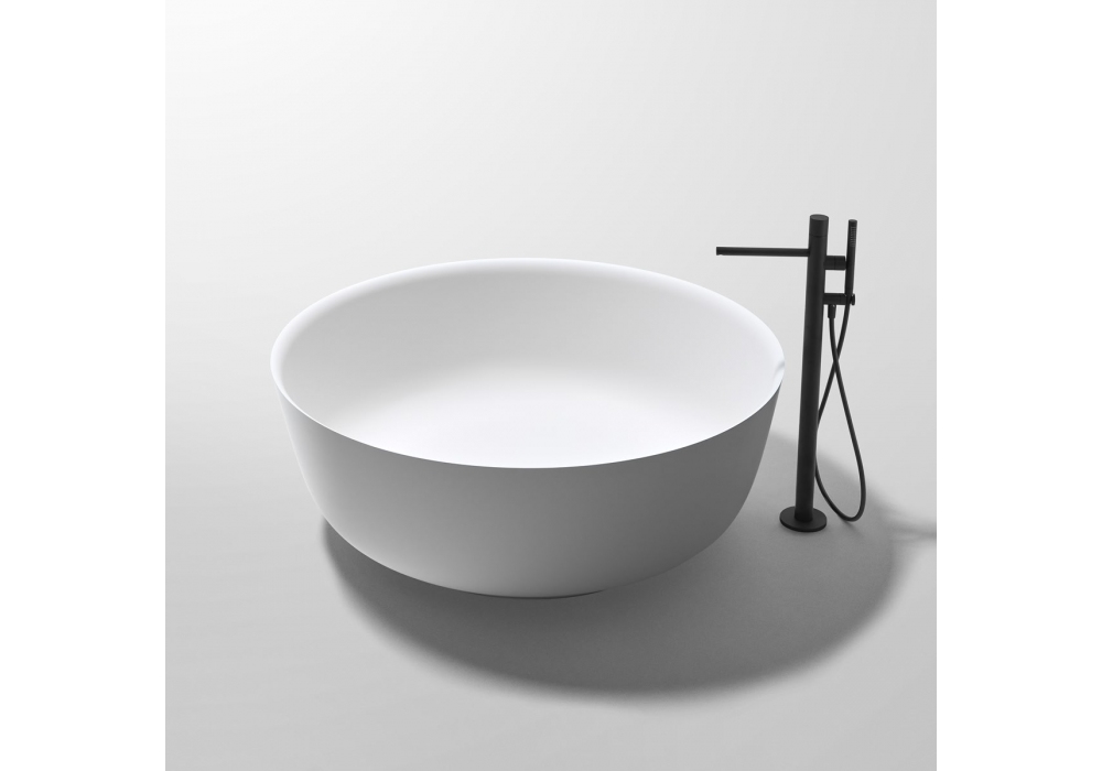 Orion designed by Mario Ferrarini for Antonio Lupi is a round bathtub in stone or Cristalplant, complete with drain.