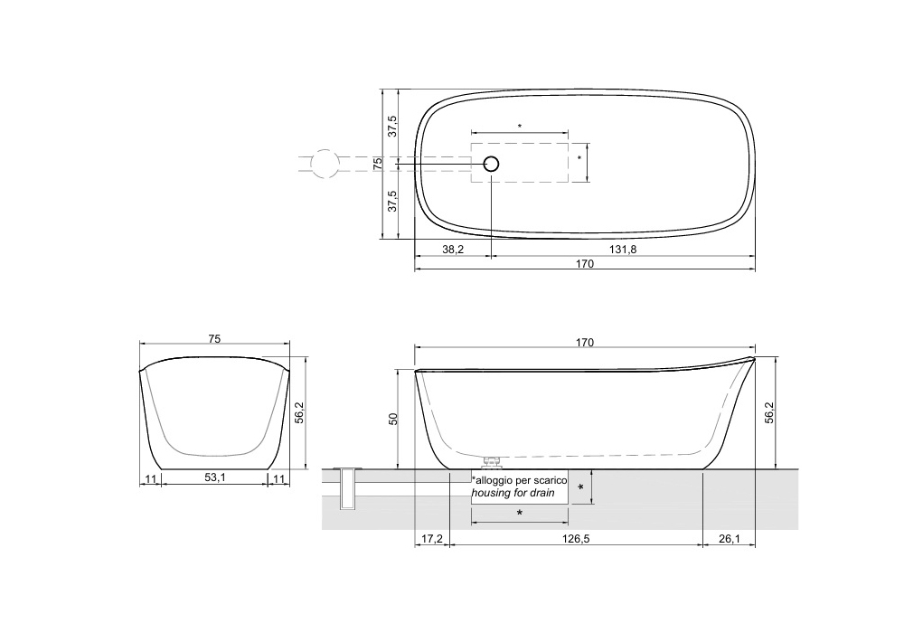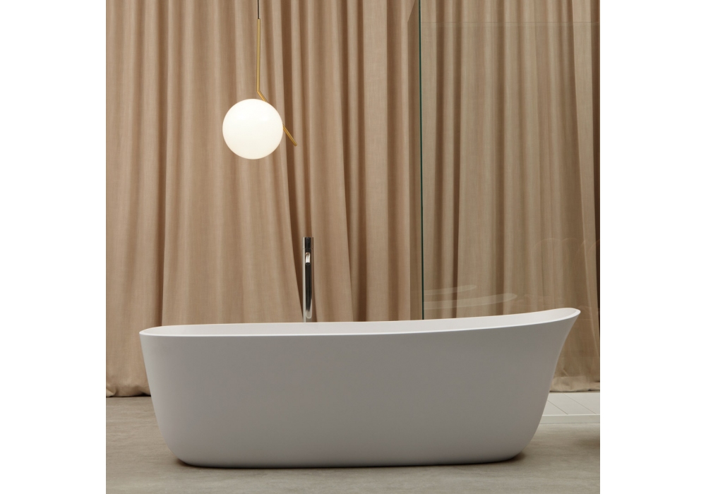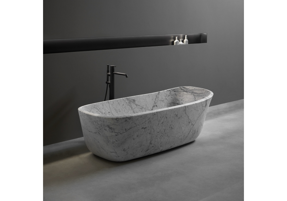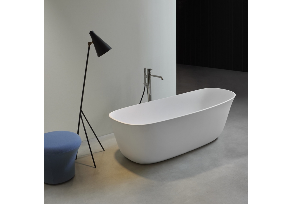 Dafne designed by Daniel Debiasi and Federico Sandri for Antonio Lupi is an oval bathtub in stone, Cristalplant or Colormood that can be painted internally and externally, complete with drain with click-clack pressure drainage system, siphon and flexible hose.