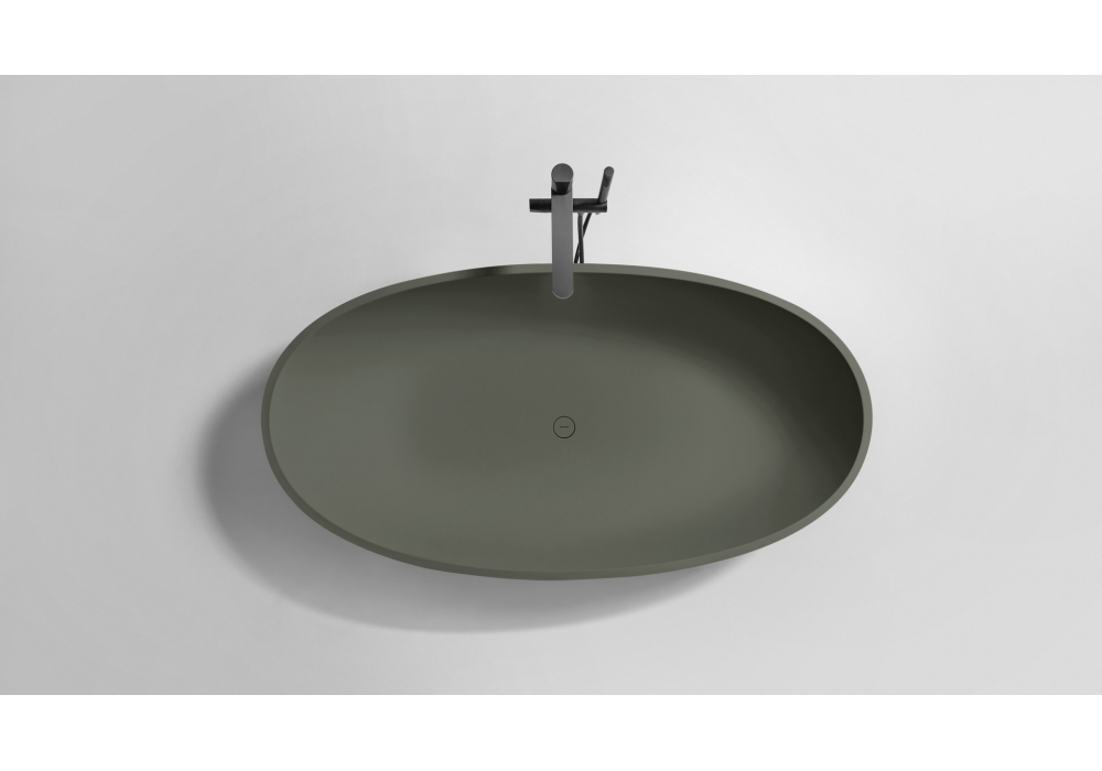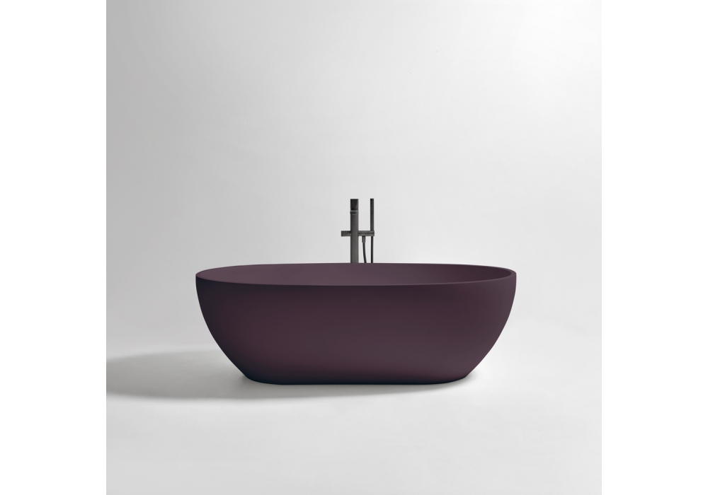 Reflex Colormood designed by Antonio Lupi is an oval bathtub in Flumood, paintable externally, in Colormood paintable internally and externally, complete with drain with invisible automatic overflow, siphon and flexible hose.