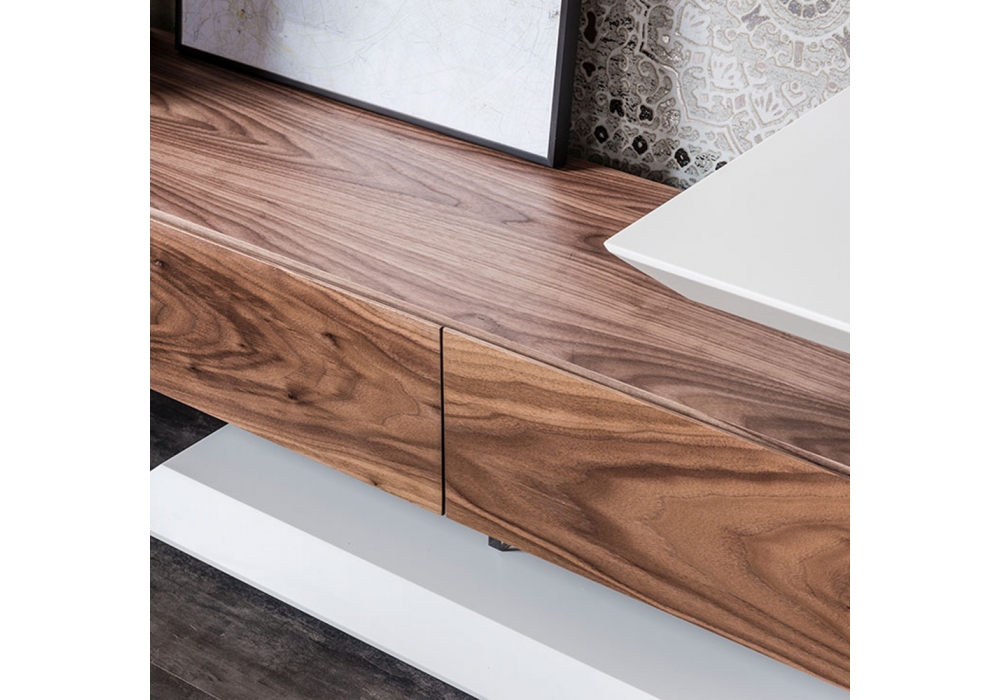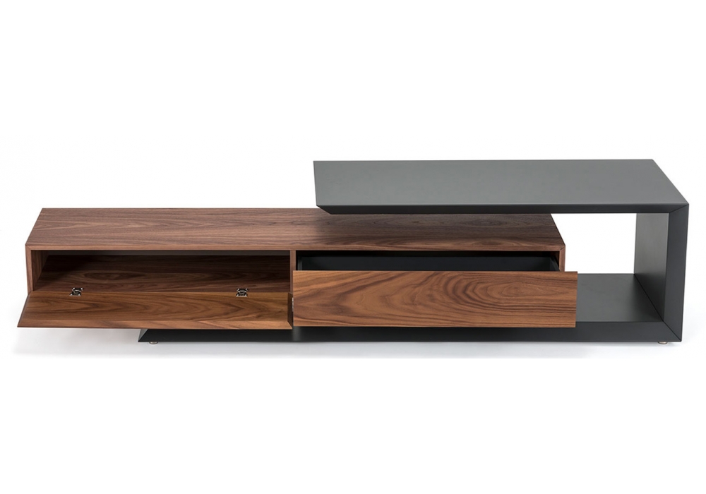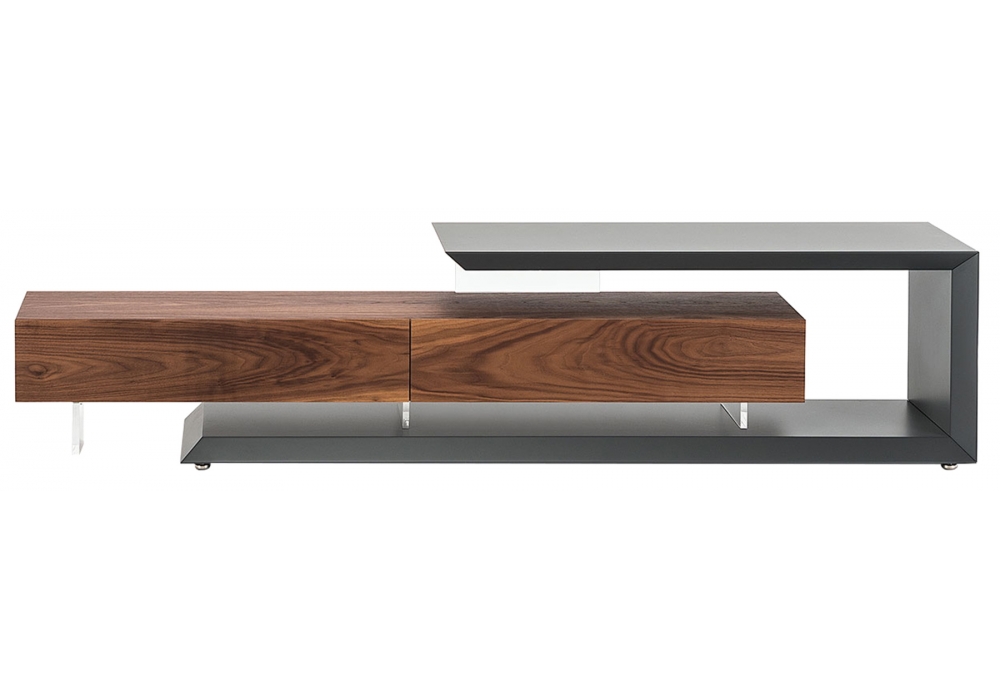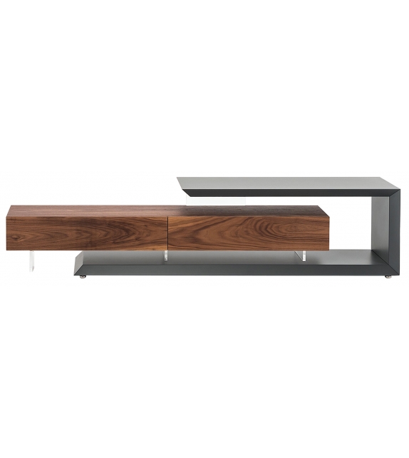 Link designed by Paolo Cattelan for Cattelan Italia is a TV stand reversible and adjustable in width. Embossed white or graphite lacquered structure. Drawer unit and doors in Canaletto walnut, embossed white or graphite.