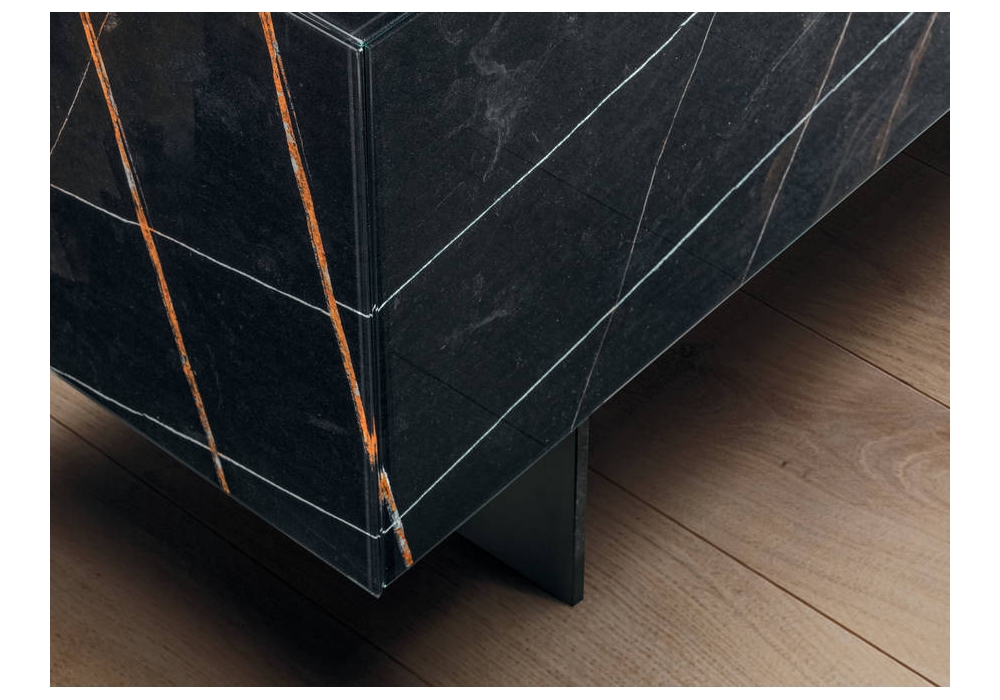 36e8 designed by Daniele Lago is a tv unit that can be customized in size, shape and color. It is available in glass or xglass.
