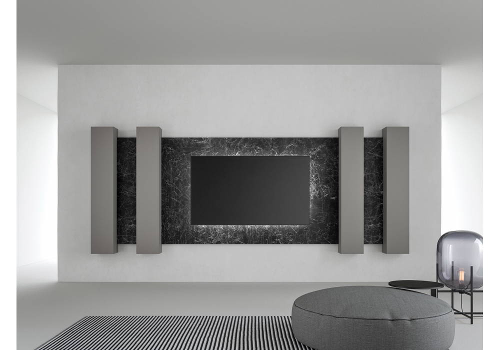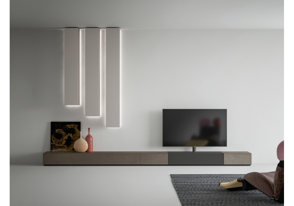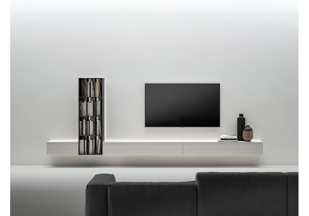 Wallover designed by Monica Graffeo for Caccaro is a modular system for TV furniture that offers different solutions for the management of the television and all the accessories. It is possible to design different compositions to better manage the space. Available in different finishes and dimensions.