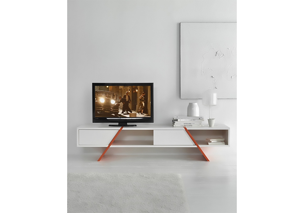 Ray designed by Andrea Lucatello for My Home Collection is a quadrangular TV unit entirely structured in MDF with two opening doors. Ray is available with a vast collection of matt lacquers.