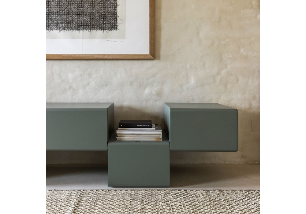 Fractal designed by Bellavista Piccini for Mogg is a TV cabinet with MDF structure with a folding door, equipped with a cable hole, and 4 drawers. Available in moka stained ash or glossy or embossed lacquer.