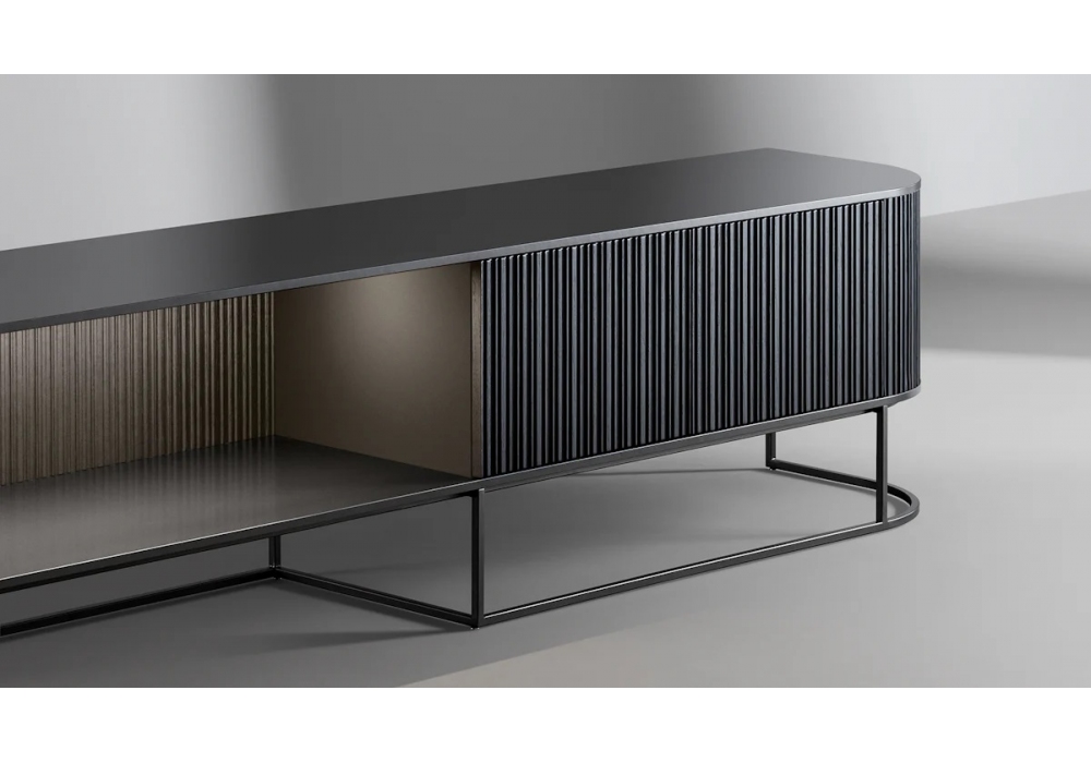 Dune TV Stand designed by Giuseppe Viganò for Bonaldo is a TV cabinet made of wood and a painted metal base. The base is available in two versions.