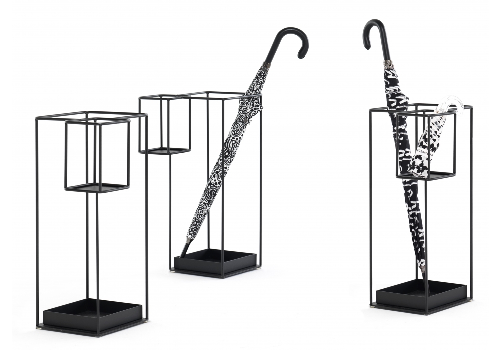 Duo designed by Carlo Contin for Mogg is an umbrella stand made of black painted metal.