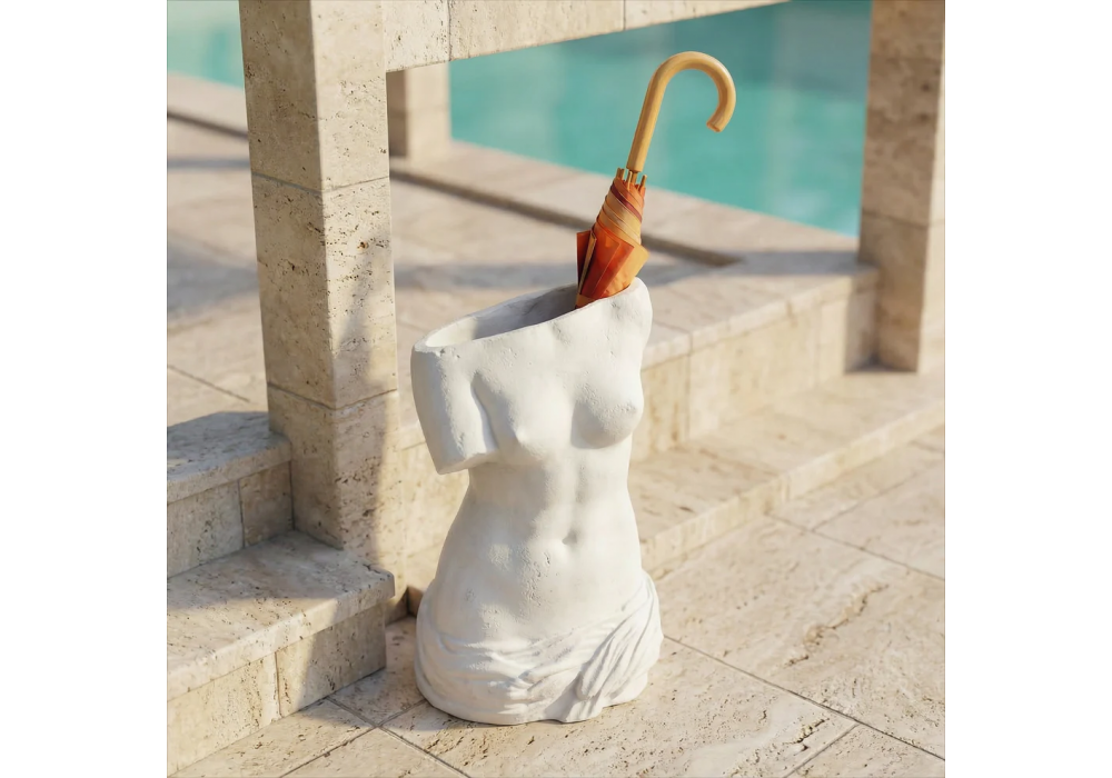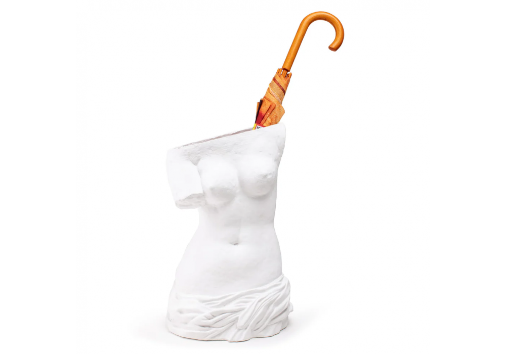Milo designed by Blow for Seletti is an umbrella stand in the shape of a female bust entirely made of white fibreglass.
