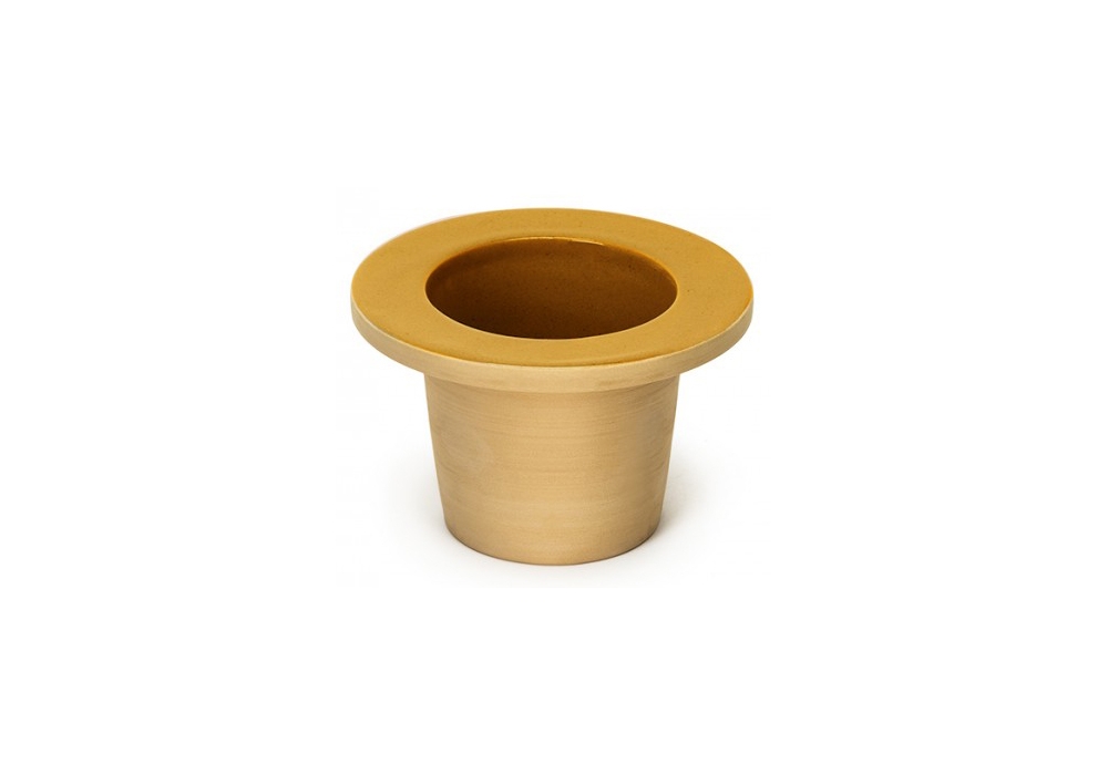 Pofi designed by Mario Scairato for InternoItaliano is a vase holder in natural and glazed terracotta suitable for small plants that decorate the environments of our home. The colored and glazed collar allows an easy grip and contrasts with the very natural look of the external terracotta. Available in different colors.