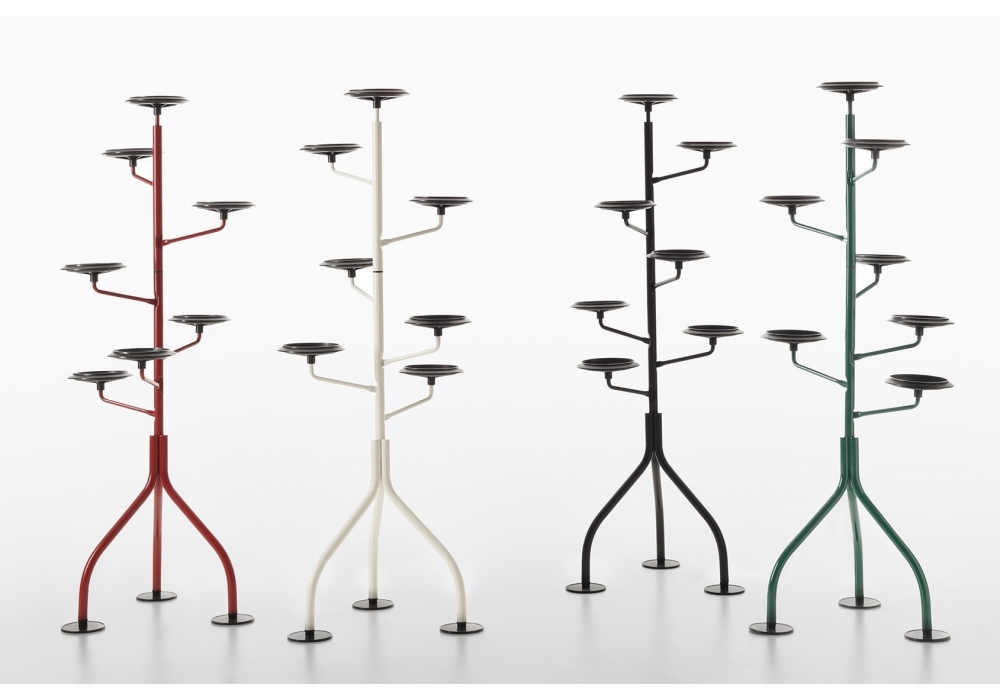 400 Albero designed by Achille Castiglioni for Zanotta is a vase holder in painted steel available in different finishes. Black pot holders and feet.