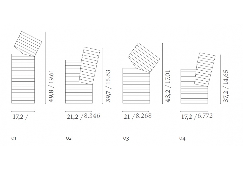 | Dimensions | Ø 21 x H 43,2 cm; Ø 17,2 x H 49,8 cm; Ø 21,2 x H 39,7 cm; Ø 17,2 x H 37,2 cm |