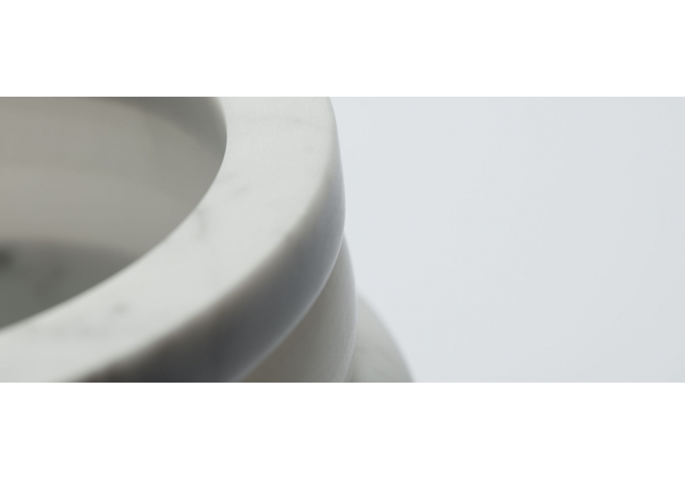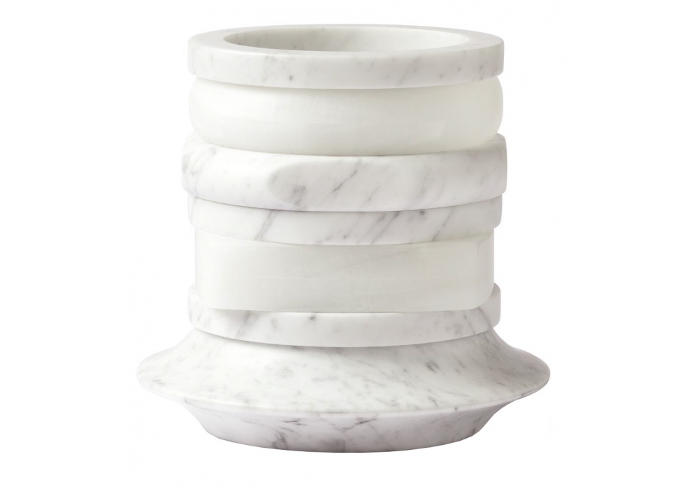 Oriana designed by Cristina Celestino for Budri is a monochromatic vase made of Iranian White Onyx and Carrara White composed of bangles of different shapes.