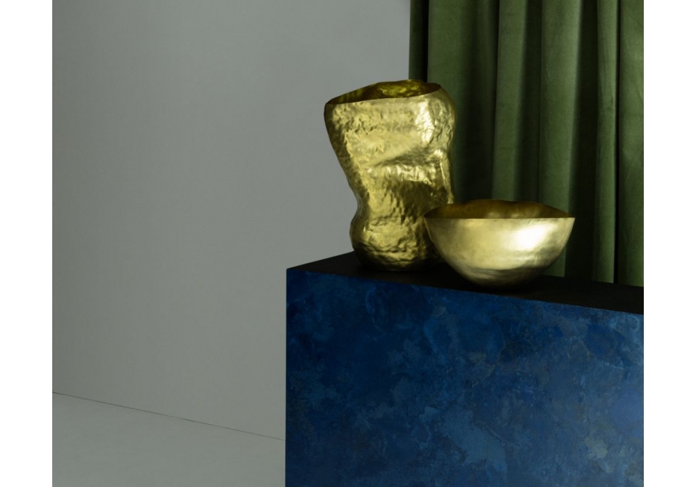 Bash Tall designed by Tom Dixon is a handmade brass vase. Each piece is unique in its shape.