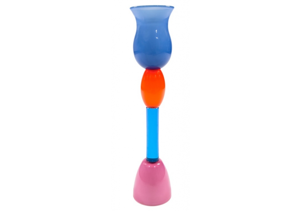 Erinna designed by Ettore Sottsass for Memphis Milano is a vase made of blown glass.