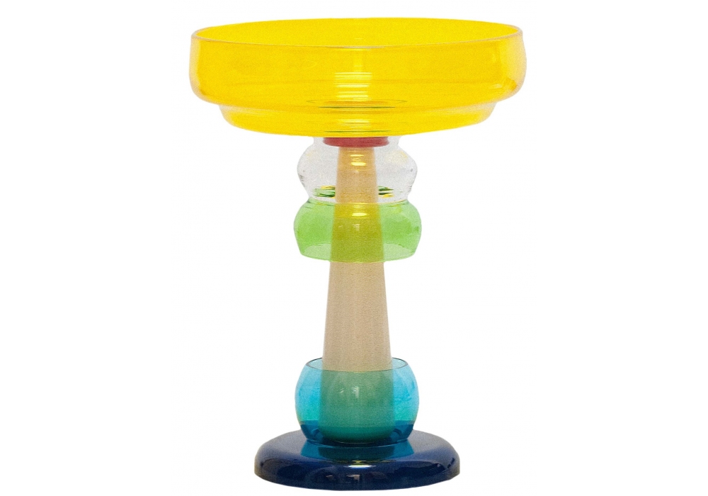 Niobe designed by Ettore Sottsass for Memphis Milano is a vase made of blown glass.