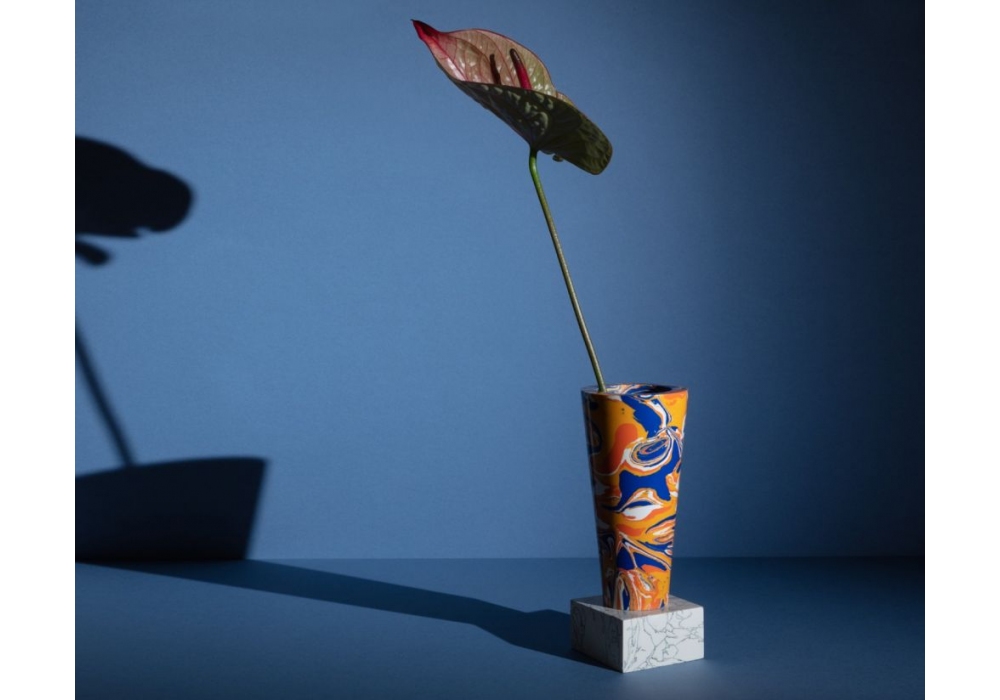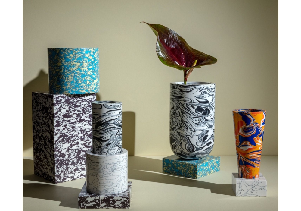 Swirl Stem designed by Tom Dixon is a vase made of marble.