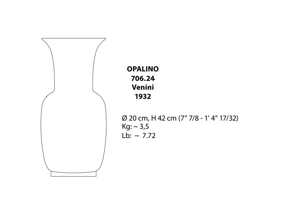 Opalino 706.24 designed and produced by Venini is a hand blown glass vase, available in different finishes.