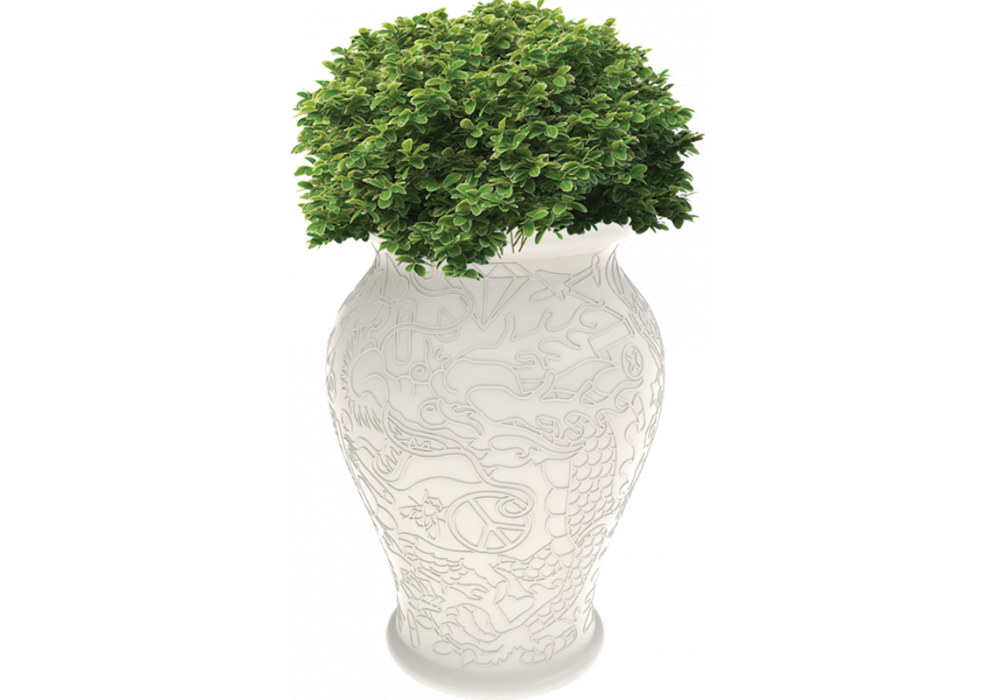 Ming Translucent designed by Studio Job for Qeeboo is a rechargeable LED vase or food basket entirely made of translucent polyethylene. Ming can be used indoors or outdoors.
