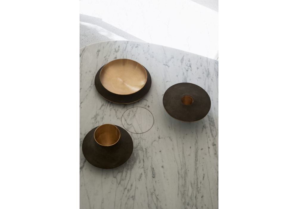 Cap53 designed by Angelo Mangiarotti for AgapeCasa is a vase made from bronze casting using a lost-wax mold, with external surfaces treated with a hot-applied silver nitrate patina and polished internal surface and edges.