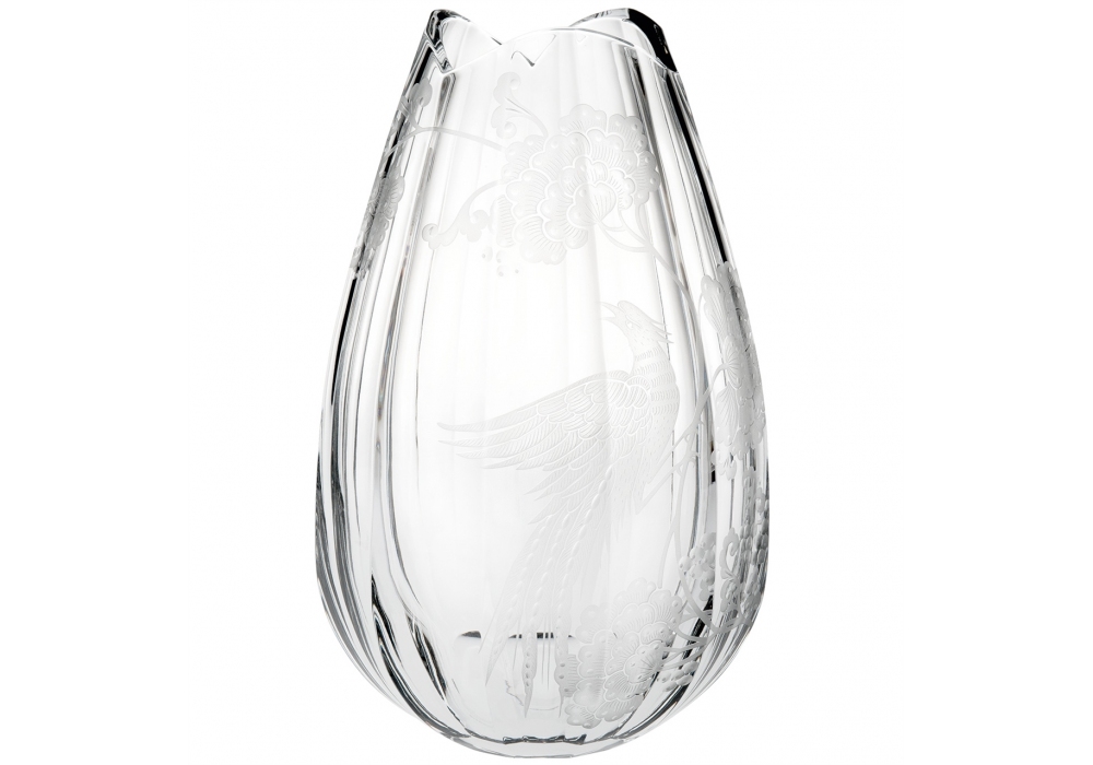 Blue Bird designed by Vista Alegre is an engraved vase made of hand-worked crystal. The Blue Bird collection represents a bird flying over the flowers.