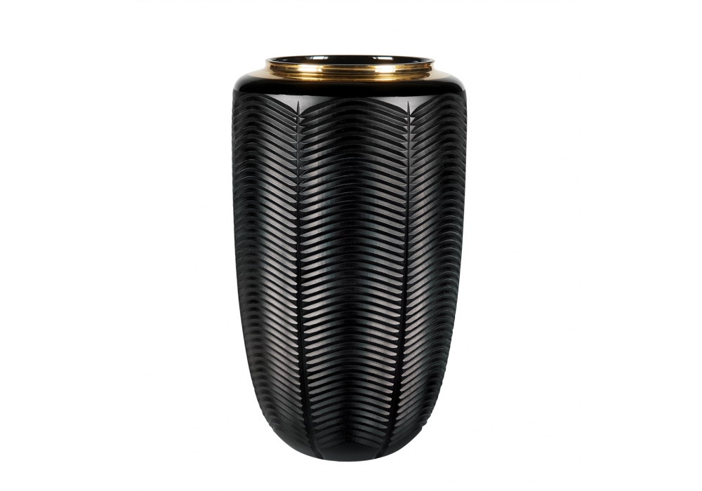 Jet Black designed by Vista Alegre is a vase made of black glass with matte satin texture and hand-painted gold neck.