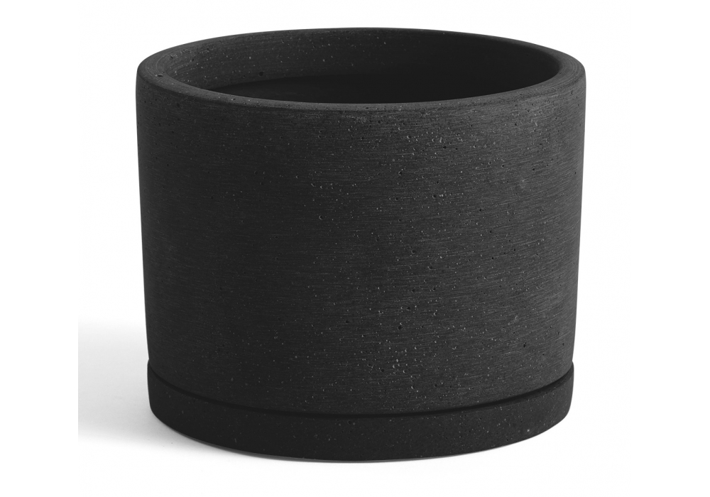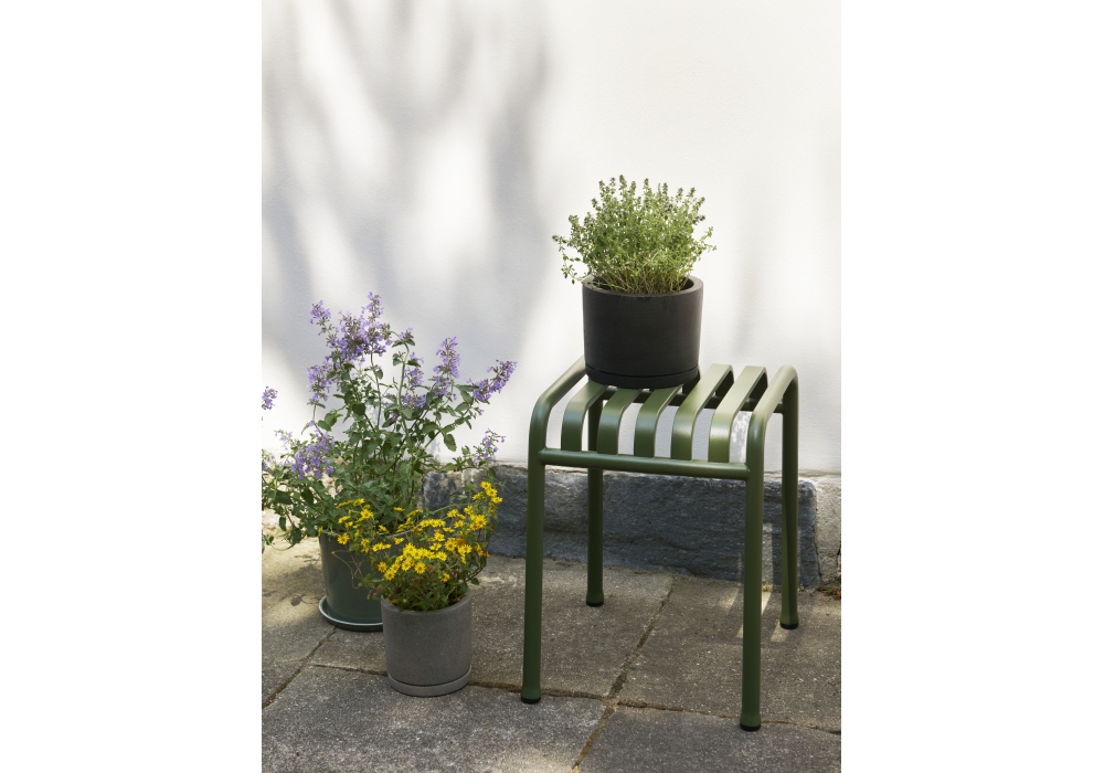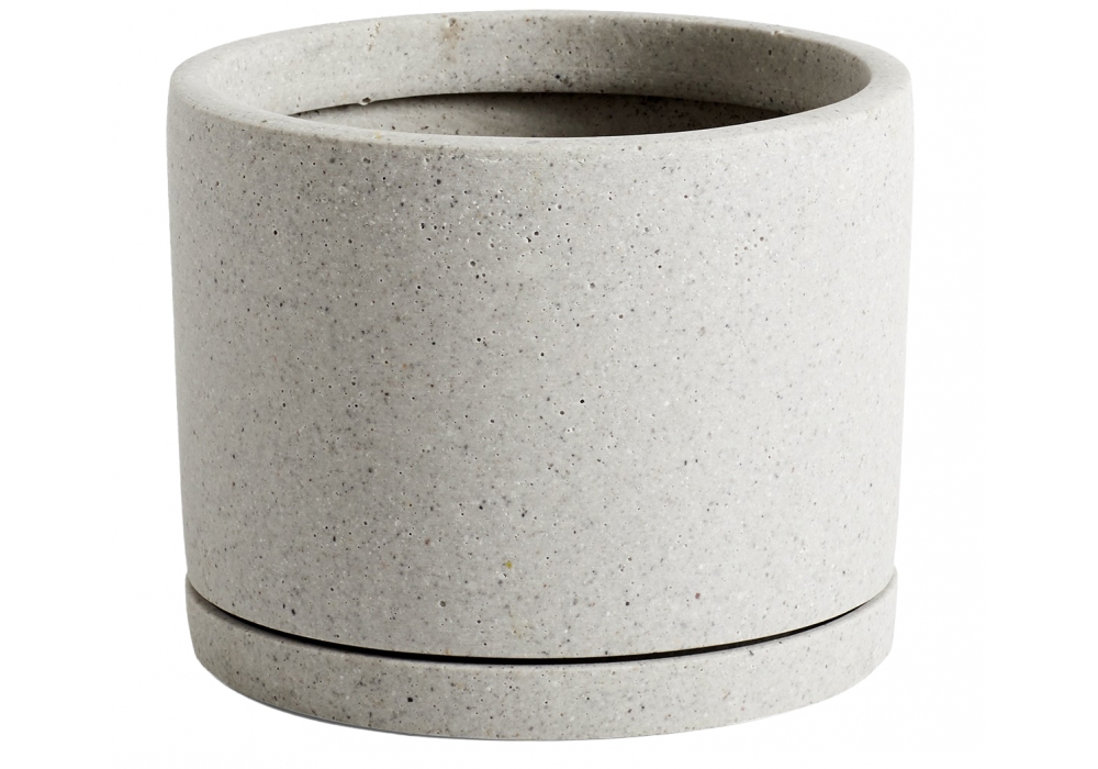 Plant Pot with Saucer produced and designed by Hay is a vase with coordinated saucer made of polystone, a light and resistant material. There is an internal lining for extra protection. The drainage hole in the bottom allows excess water to drain into the saucer. Suitable for indoor and outdoor use. Available in different dimensions and finishes.