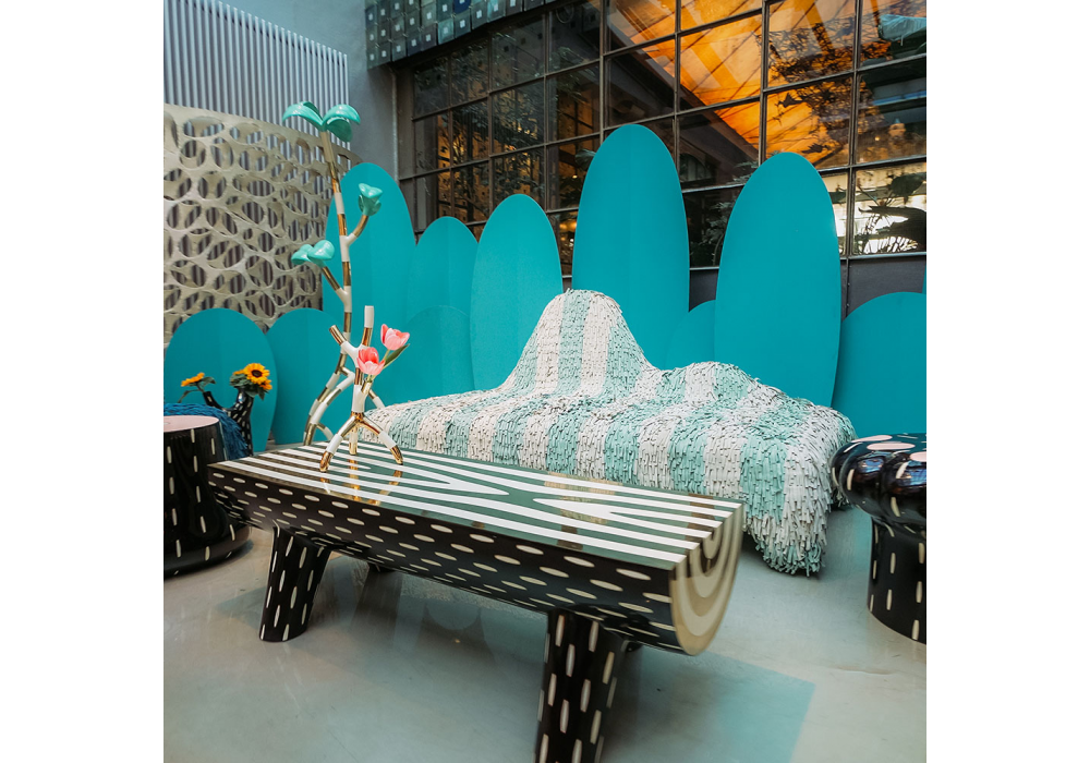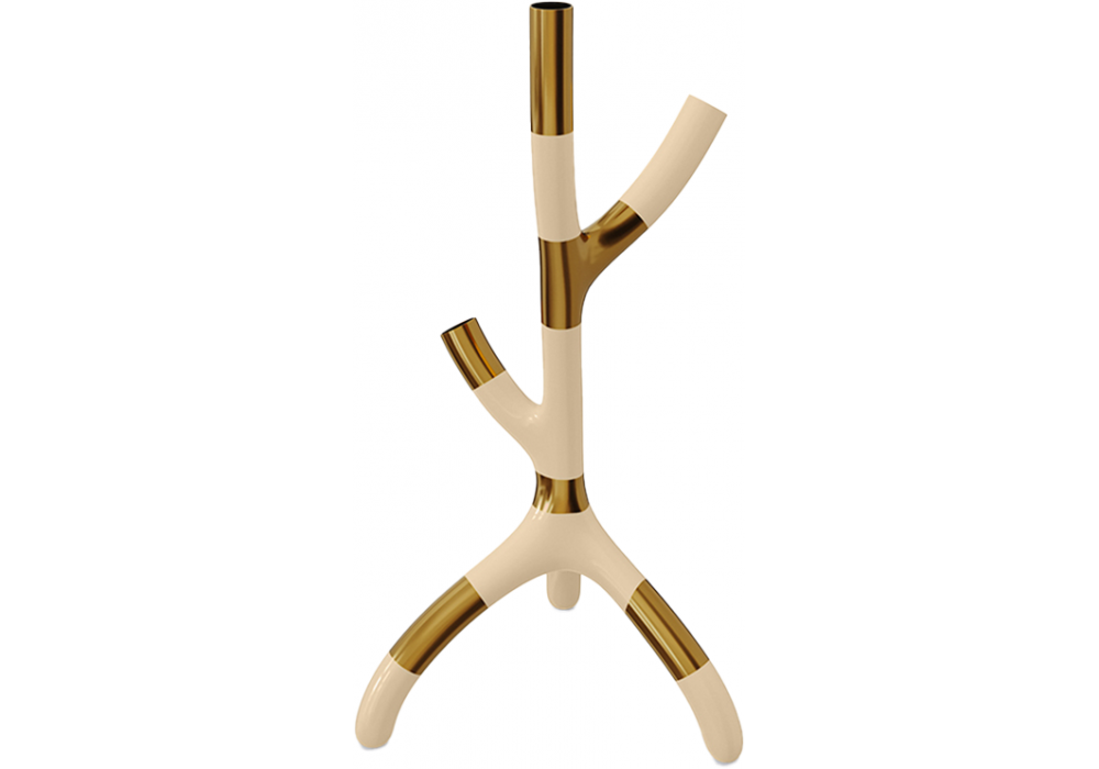Branch designed by Marcantonio for Scarlet Splendor is a vase made of brass.