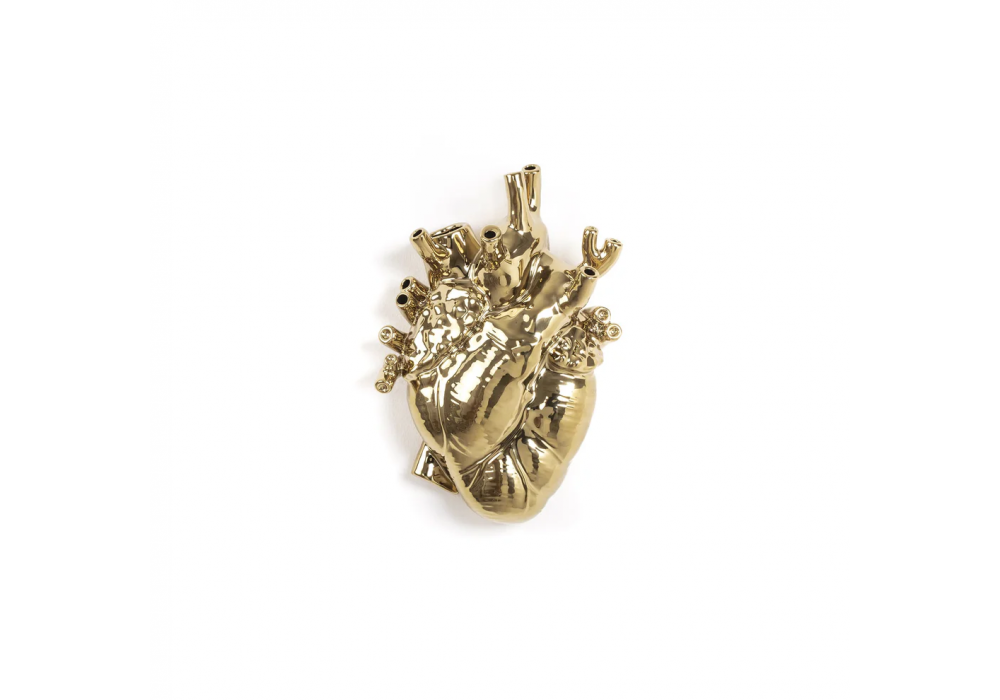 Love in Bloom Gold designed by Marcantonio for Seletti is a vase in very fine gold-colored porcelain that represents the anatomy of a human heart.