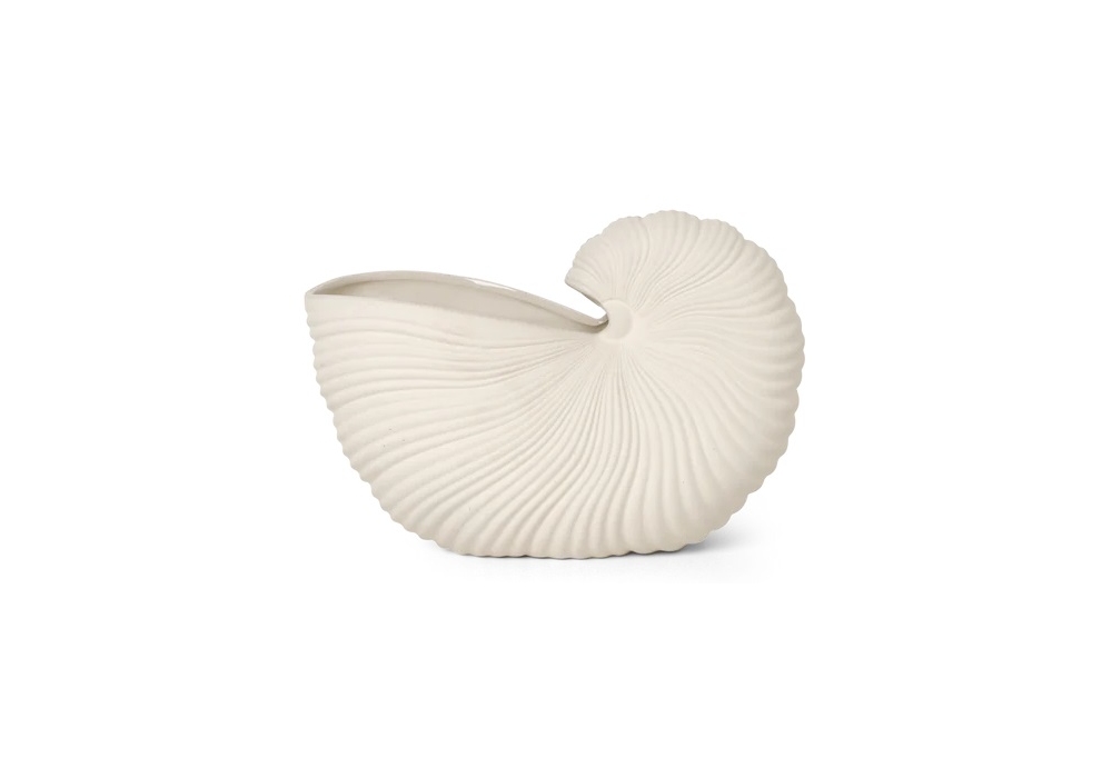 Shell Pot designed by Ferm Living is a shell-shaped vase made of stoneware. Unglazed outside. Glazed inside. With a matte outside and glazed inside, it adds delicate detail to any room, simple and sculptural all at once.