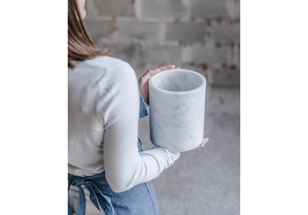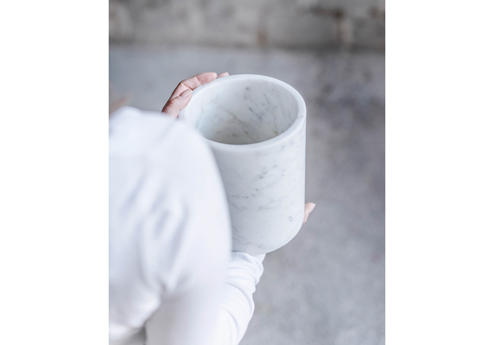 Chelsea Flower Show - Cylindrical Vase designed by MarmoLove is a vase/bottle holder made of 100% honed White Carrara Marble.