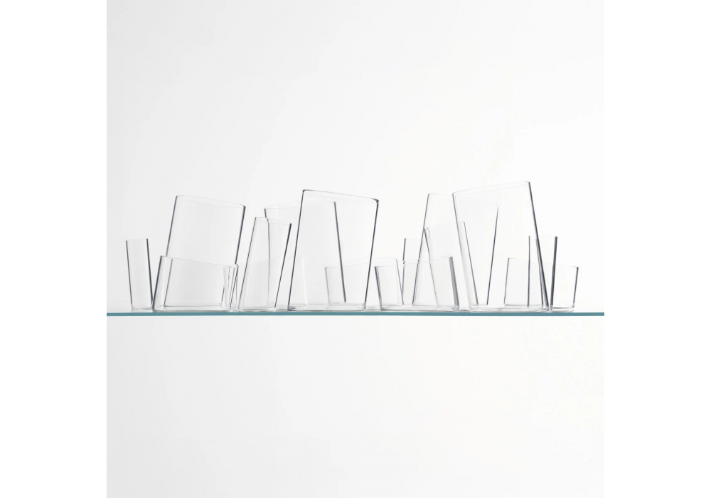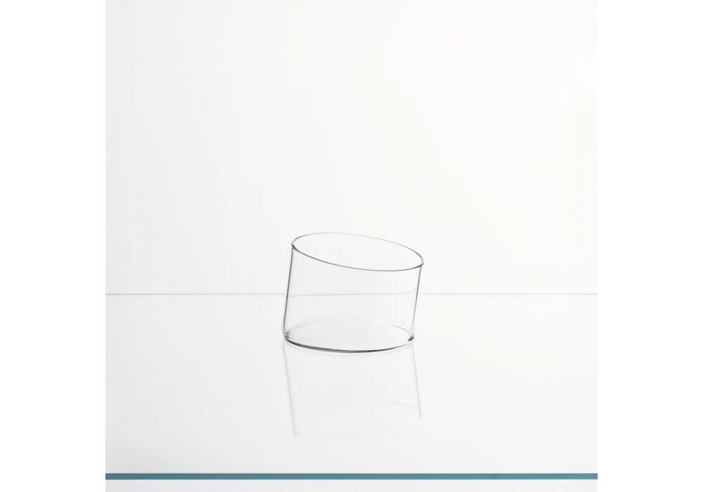 Bow designed by Piero Lissoni for Glas Italia is a vase in transparent borosilicate crystal with an inclined posture. Available in different sizes with different degrees of inclination.