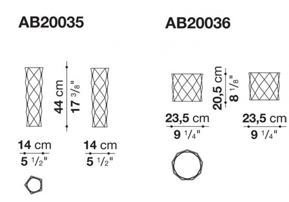 | Dimensions | Ø 14 x H 44 cm; Ø 23.5 x H 20.5 cm. |