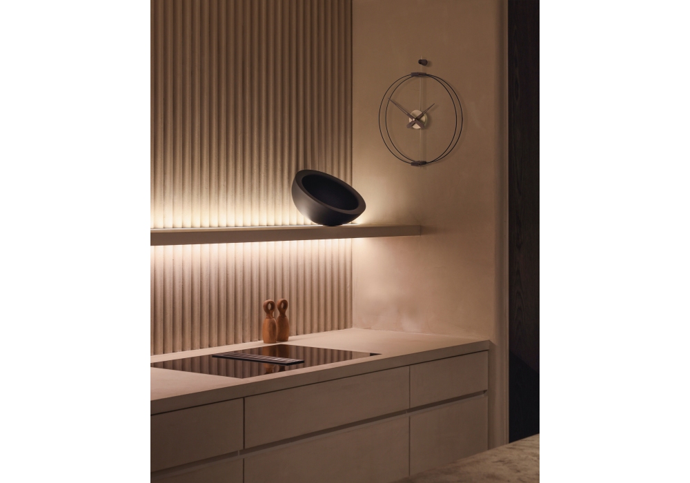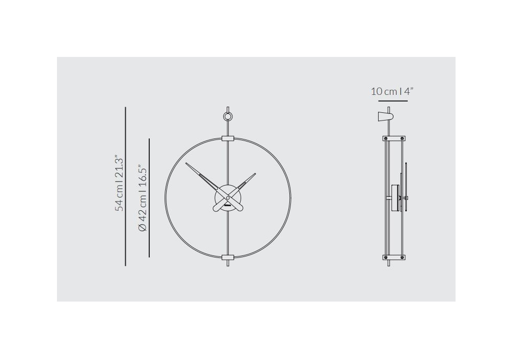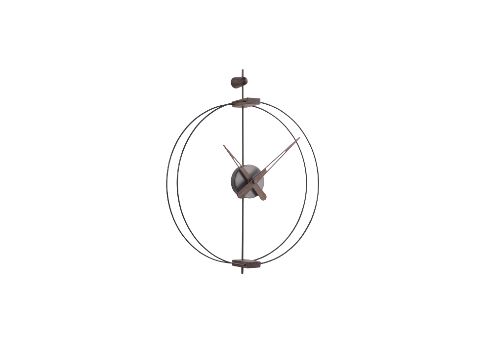 Micro Barcelona designed and produced by Nomon is a clock with black fiberglass structure with black lacquered walnut hands and polished or graphite painted brass box.